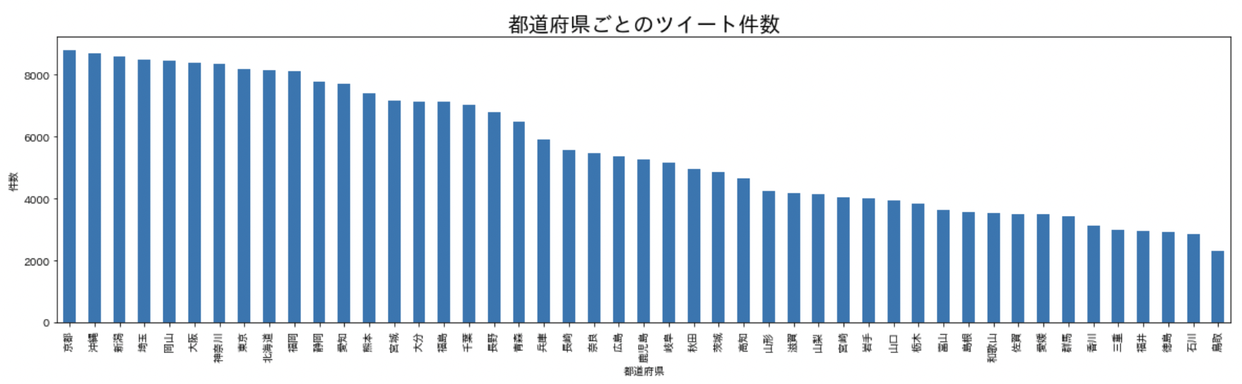 実際にモデルに使用した都道府県ごとのツイート件数は以下のようになりました。