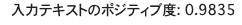 print("入力テキストのポジティブ度: {:.4f}".format(pred_proba.item()))